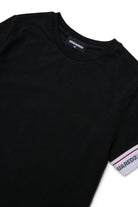 Camiseta de punto elástico de algodón, de manga corta y cuello redondo. Lleva una banda elástica con el logotipo en una de las mangas. Perfecta para el día a día.