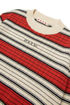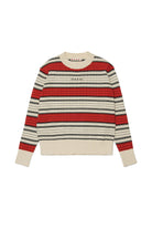 Jersey de cuello redondo en 100% algodón con diseño de rayas y logo bordado en el pecho.