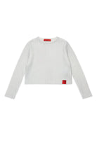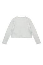 Jersey de manga larga de punto de mezcla de lana acanalado. Suave y cálido, está adornado con un acabado de mylar que confiere a la prenda un aspecto luminoso. Ideal para fiestas y eventos nocturnos.