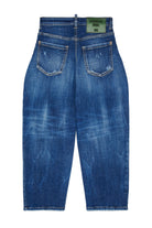 Vaqueros Amelia relaxed fit en azul medio con rotos zurcidos. La silueta es extragrande y cómoda desde la cintura hasta los tobillos. La pierna tiene forma de globo, ligeramente más estrecha en la parte inferior. Una declaración de estilo sin concesiones.