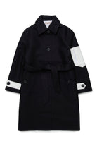 Trench de algodón con logo en la parte trasera, caracterizado por un diseño clásico y moderno.