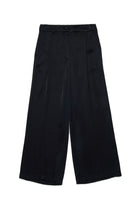 Pantalones palazzo de pernera ancha en satén. Plisados en la parte delantera. Bolsillos planos delante y bolsillos con ribete detrás. Etiqueta N°21 en la espalda. Forro interior. Una prenda perfecta para ceremonias y ocasiones especiales.