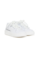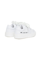 Zapatillas bajas con cordón y logo institucional impreso en contraste en el lateral. Puntera perforada. Pala de cuero de becerro. Suela de goma termoplástica. Realizadas en Italia.