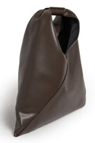 Mini bolso japonés en tela recubierta. Caracterizado por una silueta triangular y la presencia de botones en los bordes que permiten que el bolso cambie de forma doblándolo de diferentes maneras, una clara referencia al código estético de la Maison francesa. El mango tiene una parte de cuero con un logotipo numérico. Es el accesorio más emblemático de MM6, extraído de la colección para adultos.
