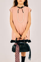Bolso bandolera con logotipo y doble asa, líneas suaves y esenciales