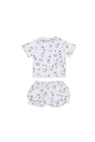 Conjunto para recién nacido de algodón con estampado integral de animalitos y nubes para un estilo divertido.