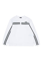 Sudadera de cuello redondo con logo y bandas aplicadas con cremallera en pecho y mangas para un look dinámico.