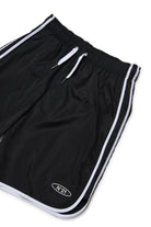 Bañador tipo bóxer con logo y ribetes en contraste, caracterizado por cordón ajustable en la cintura y bolsillos laterales.