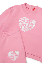 Chándal con logo estampado de diseño casual y gráfico de corazón en el pecho y en la pierna. El conjunto incluye sudadera y pantalones de algodón.