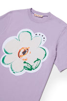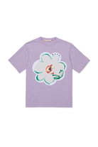 Camiseta de 100% algodón con una gran aplicación en forma de flor en la parte delantera y logo bordado. Una prenda icónica de carácter gráfico y vivo.