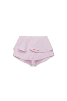 Pantalones cortos de popelín con cintura elástica. Llevan volantes en la parte delantera con un logotipo institucional con la marca en contraste. Realizados en 100% algodón.
