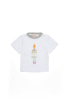Camiseta de manga corta de jersey. Presenta un estampado de una muñeca dibujada en la parte delantera. De cuello redondo en contraste de color. Práctico cierre de botón a presión en el hombro. Realizada en 100% algodón.