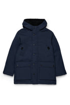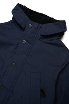 Chaqueta acolchada largo de nailon con parche de Diesel en el hombro. Relleno de falso plumón con capucha. Cierre de cremallera frontal oculta, cuatro bolsillos en la parte delantera.