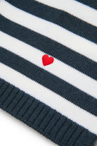 Una bufanda de lana a rayas, suave y cálida. El corazón bordado en un extremo le da un toque distintivo, perfecto para completar los looks de invierno con estilo y personalidad.