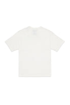 Camiseta de cuello redondo confeccionada con tejido deadstock y canalé en el cuello. Serigrafía de los gráficos Before we en el frente.