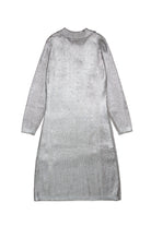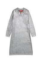 Vestido largo entallado con cuello tipo polo. Una prenda que combina elegancia y modernidad, con un acabado de mylar superbrillante para un aspecto muy distintivo.