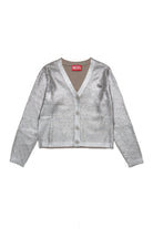 Cárdigan de manga larga en mezcla de lana con estampado de mangas. Una prenda que combina elegancia y modernidad, con un acabado brillante para un look muy distintivo.