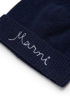 Gorro en mezcla de lana y cachemira con logo cursiva Marni bordado en color de contraste en la parte delantera. Un accesorio cálido y refinado, perfecto para completar con estilo tu vestuario de invierno.