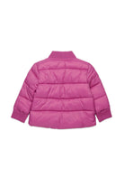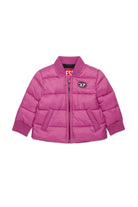 Chaqueta corta acolchada con acolchado horizontal ideal para entretiempo. El parche D ovalado aplicado en el lado del corazón añade un detalle distintivo.