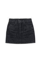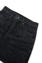 Minifalda de denim negro adornada con adornos aplicados por delante y por detrás. El toque de luz que aportan los adhesivos añade un toque de elegancia para cualquier ocasión.