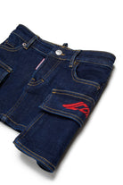 Minifalda cargo en denim azul oscuro. Un modelo vanguardista que combina comodidad y carácter, gracias a los bolsillos laterales de estilo utilitario. Una prenda en perfecto estilo Dsquared2, ideal para realzar cualquier look.