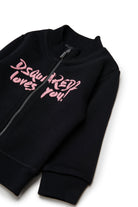 Sudadera con cremallera completa y estampado con efecto de goma "Dsquared2 Loves You" en la parte delantera. Una letra pop que hace un guiño a los pequeños amantes de la moda.