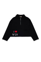 Sudadera con cuello tipo polo y cremallera frontal, mangas y hombros caídos para un look relajado y contemporáneo. El detalle "I Love N°21" en el bolsillo, con estampado al agua y corazón en relieve con efecto engomado, añade un toque lúdico y distintivo.