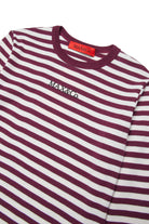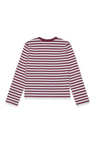 Camiseta de manga larga en microcostina a rayas, confeccionada en algodón teñido en hilo. Una mezcla de colores que realza el logotipo de efecto engomado estampado en la parte delantera.