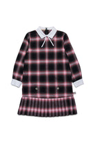 Vestido midi de franela a cuadros con bajo plisado. Una prenda en la que el estampado de cuadros sombreados se convierte en símbolo de estilo e identidad, embellecido con detalles originales como el lazo de quita y pon.