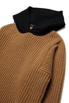 Jersey de mezcla de lana con capucha de forro polar en color de contraste. La confección en canalé del cuerpo se combina con la actitud deportiva de la capucha, creando un equilibrio entre comodidad y estilo informal.