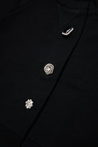 Sudadera de manga larga, estilo cárdigan, con botones joya. Una reinterpretación de la clásica sudadera de cuello redondo, con dobladillos sin rematar que añaden un toque moderno y descarnado a una prenda única.