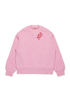 Sudadera de manga larga y cuello redondo. De diseño esencial, conquista con un detalle llamativo: el logotipo N°21 en versión cursiva, realizado en un cordón en contraste en la parte delantera, que aporta un toque fresco y reconocible a la prenda.
