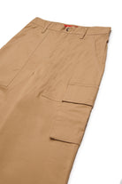 Pantalón cargo de gabardina elástica con bolsillos laterales. Un modelo de pierna ancha de inspiración utilitaria, diseñado para acompañar cada momento del día con estilo.