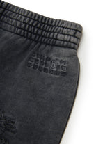 Pantalones en chándal tratado con efecto desgastado y roturas zurcidas. El logotipo Numeric bordado tono sobre tono en la parte delantera y el dobladillo de corte crudo en el bajo confieren a la prenda un aspecto contemporáneo y distintivo.