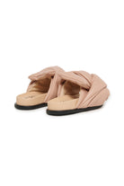 Sandalias de original diseño con parte superior anudada con efecto abullonado. Forro interior de piel de becerro. Suela de goma termoplástica. Realizadas en Italia.