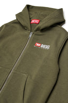 Sudadera de manga larga con cremallera y capucha de carácter inconfundible. El logotipo Diesel Denim Division, realzado por un efecto salpicado de agua, le confiere un aspecto dinámico y moderno. Una prenda que combina comodidad y estilo.
