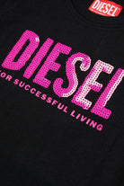 Camiseta de punto de algodón con logo Diesel con lentejuelas en la parte delantera. Confeccionado en 100% algodón.