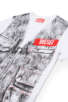 Camiseta de punto de algodón con estampado digital Utility Vest en la parte delantera.