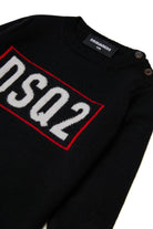 Vestido de manga corta de suave lana merina con logotipo DSQ2 en jacquard en la parte delantera. Acogedor y cálido, es ideal para afrontar los meses fríos con un toque de estilo.