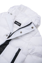 Chaqueta acolchada larga de nylon brillante con capucha. El logotipo de Dsquared2 en contraste a lo largo del cierre le da un toque icónico y reconocible al instante.