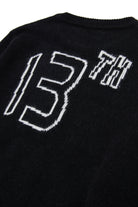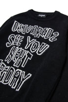 Jersey de manga larga en mezcla de lana con letras en jacquard inspiradas en el terror. Una prenda con un fuerte carácter, perfecta para aquellos a los que les gusta destacar.