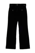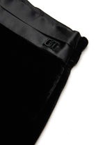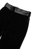Pantalón formal de terciopelo con placa metálica D2 negra mate aplicada en la banda. Una prenda refinada y sofisticada, ideal para fiestas y ocasiones especiales.
