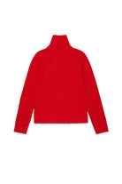 Cárdigan de cuello alto en punto de mezcla de lana acanalado. Cálido y práctico con cierre delantero de cremallera, se realza con un parche y una abertura delantera que aligera la línea.