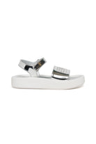 Sandalias con logo en contraste y acabado metalizado efecto espejo.