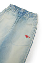 JoggJeans® de cinco bolsillos con corte tapered y actitud fresca. Cintura media. Cintura con cordón y elástico en el tobillo. Realizados en denim lavado de efecto desgastado, un lavado típico del ADN de Diesel. Lleva el logotipo "D" bordado en contraste de color en la parte delantera.