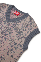 Vestido de punto de lana sin mangas con cuello en V. El diseño Acid Rain le confiere un efecto distintivo, mientras que el detalle metálico del corazón añade un toque refinado. Perfecto para un look original y sofisticado.
