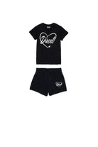 Mono corto con logo y estampado gráfico de corazón en la camiseta combinada con shorts coordinados, perfecta para un look animado.