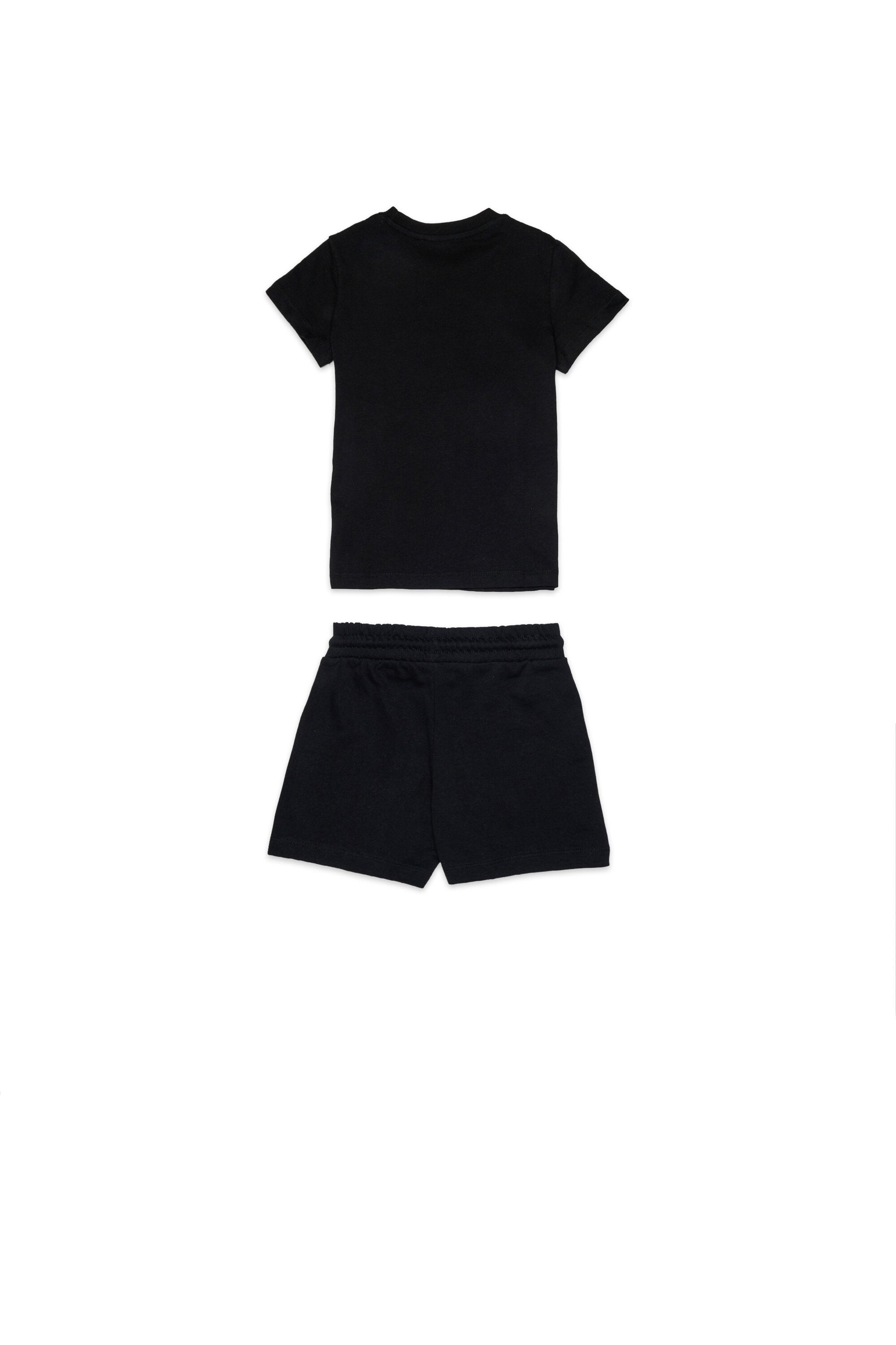 Mono corto con logo, compuesto por camiseta de cuello redondo y pantalones cortos con cordón en la cintura.