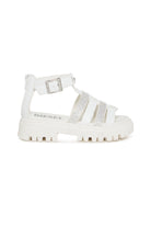 Sandalias con logo y parte superior de múltiples tiras con un diseño robusto y moderno. Destacan por el detalle de strass en las tiras, que los convierte en un calzado reconocible.