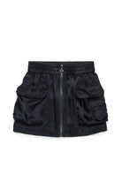 Minifalda de inspiración utilitaria con cintura elástica. Realizada en satén con aspecto brillante. Logotipo Oval D icónico bordado a tono en la solapa de uno de los bolsillos de parche delanteros. Cierre de cremallera frontal.